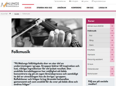 Die Folkhögskola in Malung (Dalarna) bietet u.a. hervorragende Kurse in schwedischer Volksmusik (Geige, Gesang und Tanz) an -